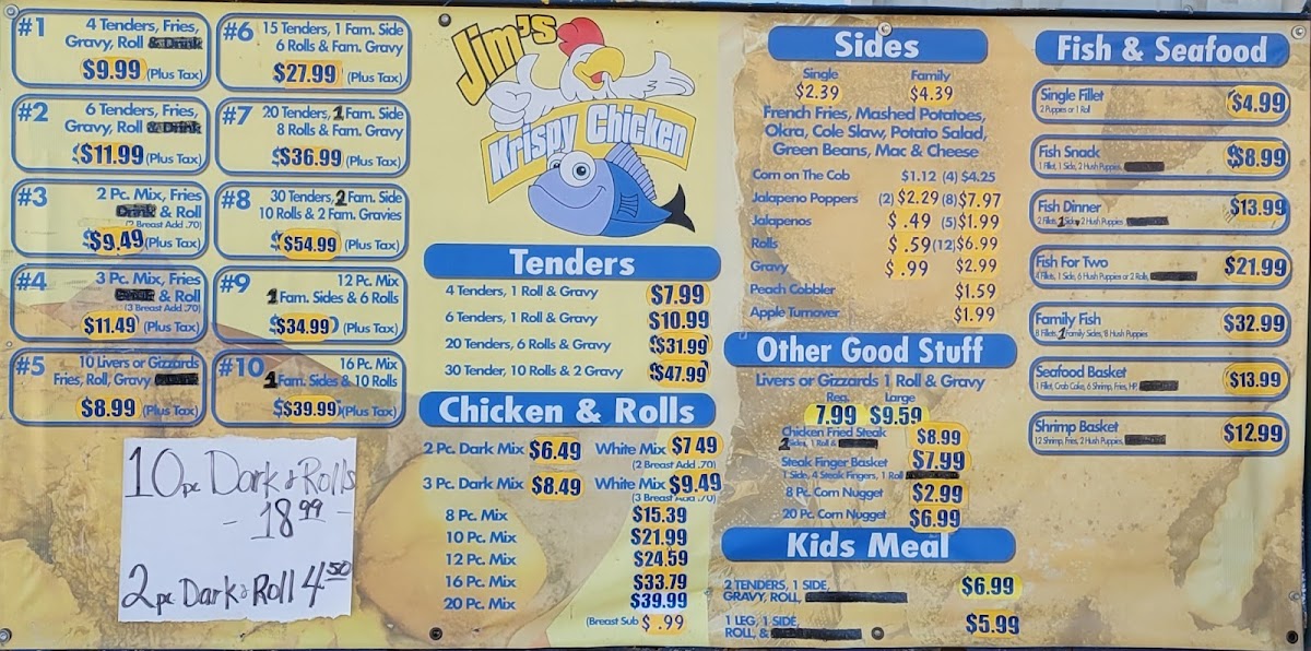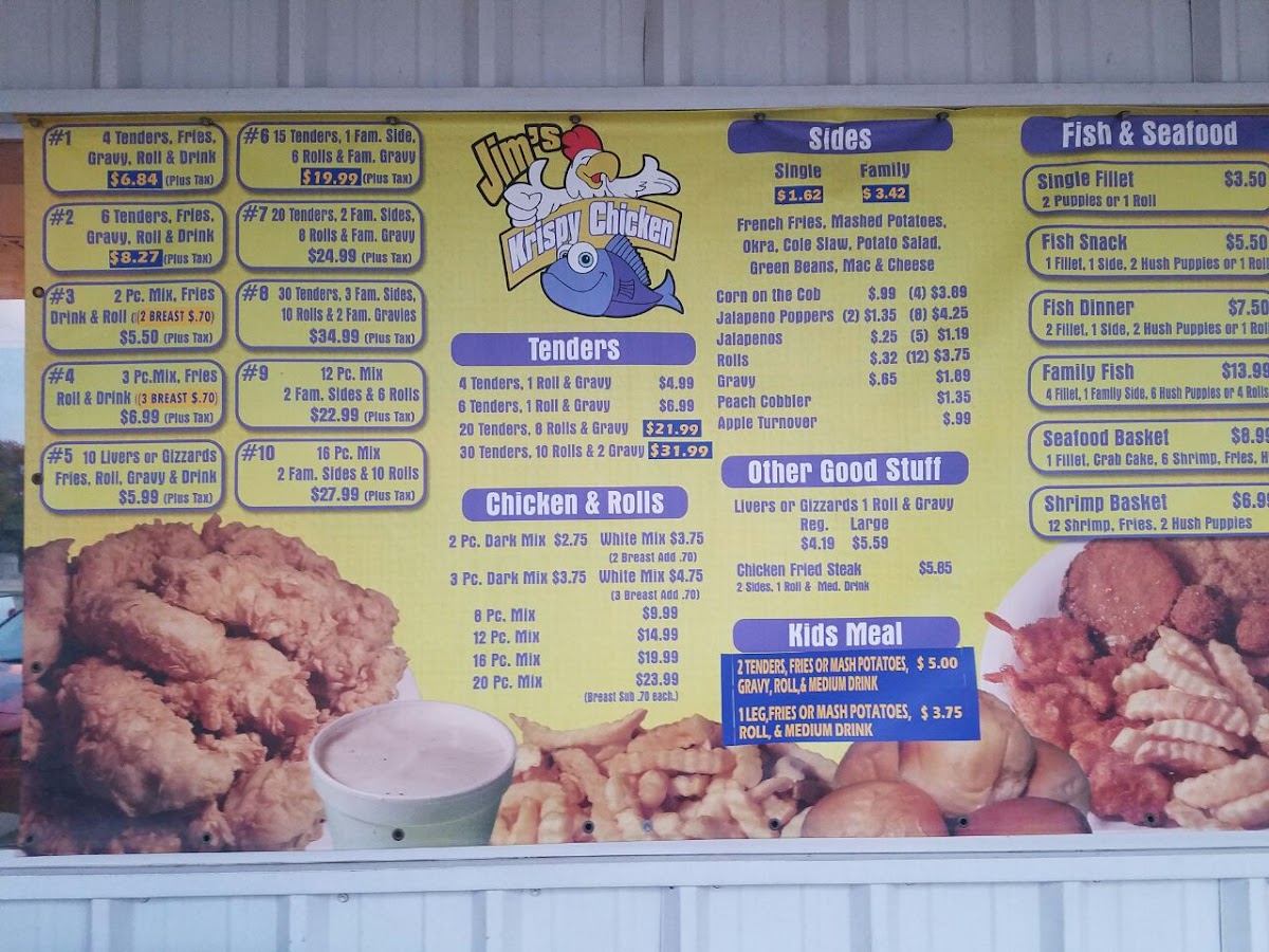 Introducing the menu at Jim's Krispy Fried Chicken is a delightful culinary experience waiting to be savored. Located at 3401 Bellmead Dr, Waco, TX, this spot specializes in crispy, flavorful fried chicken that customers rave about. The menu boasts a variety of options, including the classic 2 Piece Dark Chicken Mix and the 4 Piece Tenders and Fries, both served with gravy, rolls, and a drink, ensuring a hearty meal for everyone.